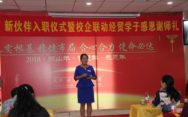 河南經(jīng)貿(mào)職業(yè)學(xué)院會(huì)計(jì)學(xué)院白石書記致辭中說,新員工要像新學(xué)生一樣有“六新”:新起點(diǎn)、新環(huán)境、新伙伴、新展示、新評(píng)價(jià)、新發(fā)展;同學(xué)們找到了人生的知名份工作,良好的開始是成功的捷徑,走出校園這所大學(xué),跨進(jìn)更大的校園,這就是社會(huì)大學(xué),期望同學(xué)們繼續(xù)堅(jiān)持學(xué)習(xí),要有終身學(xué)習(xí)的心態(tài);對(duì)家人、對(duì)學(xué)校、對(duì)社會(huì)要有一顆感恩之心。最后,他勉勵(lì)同學(xué)們要把握好機(jī)會(huì),無論在什么崗位,都要堅(jiān)持走下去,要沉淀下來,唯有堅(jiān)持,才能收獲驚喜。