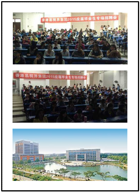 20141017日,由易視界集團(tuán)舉辦的“百人精英團(tuán)隊(duì)計(jì)劃”秋季招聘會(huì)在鄭州中州大學(xué)拉開帷幕,吸引了來自中州大學(xué)等多所高校的400多名應(yīng)屆畢業(yè)生前來應(yīng)聘求職。招聘會(huì)場(chǎng)內(nèi)人頭攢動(dòng),座無虛席,大批的求職者不斷的涌入,場(chǎng)面氣氛異常火爆。中州大學(xué)知名校友、易視界品牌運(yùn)營(yíng)機(jī)構(gòu)市場(chǎng)部蘇總重返母校,親臨招聘會(huì)現(xiàn)場(chǎng)宣講易視界集團(tuán)文化、經(jīng)營(yíng)理念和發(fā)展前景,并熱心解答年輕校友們的咨詢提問。